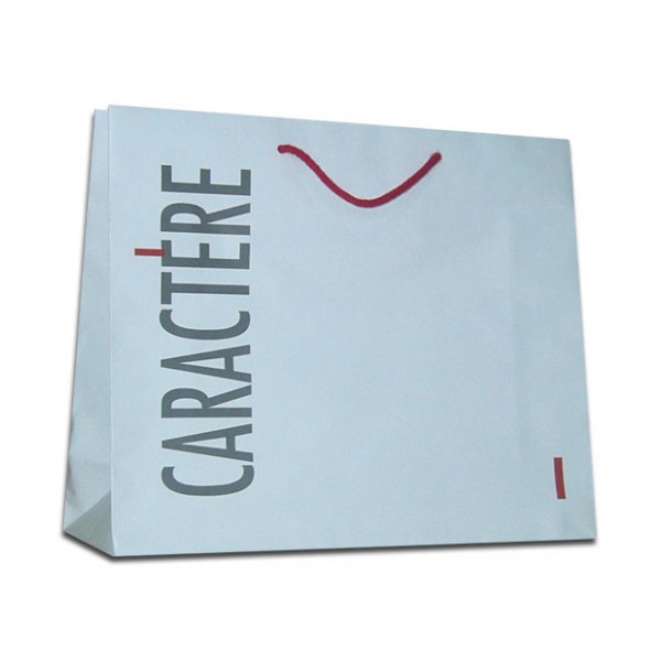 Les sacs luxes sont fabriqués à partir de feuilles de papier kraft minimun de 150 g, assemblées et collées ensuite à la main (d'où l'appelation de sacs manuels).