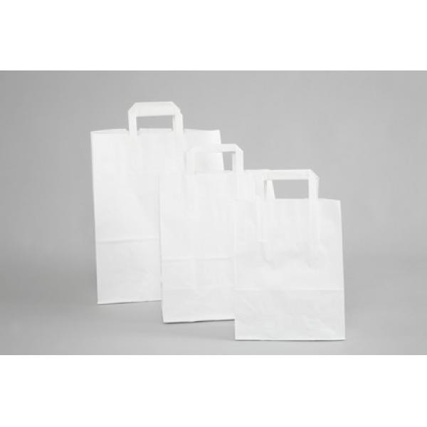 50 sacs papier blanc lisse poignées plates