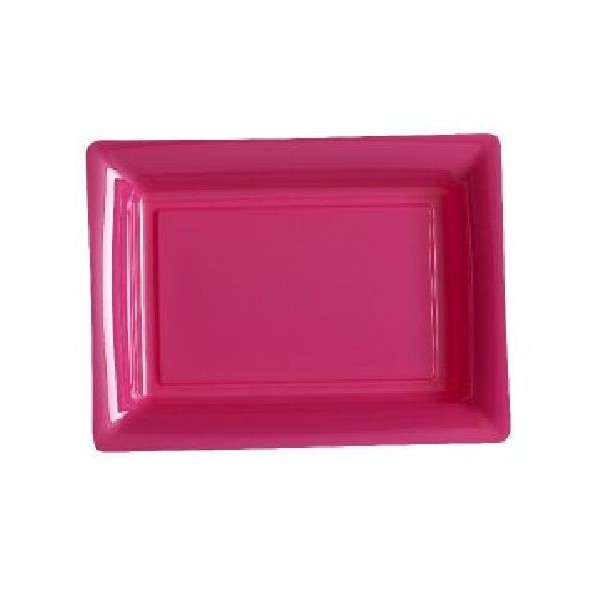 Assiettes rectangulaires plastique fuchsia 27.5x20 cm.