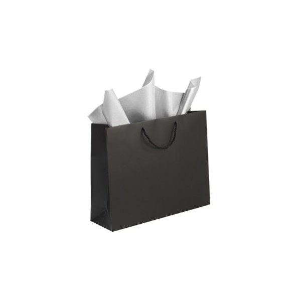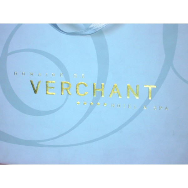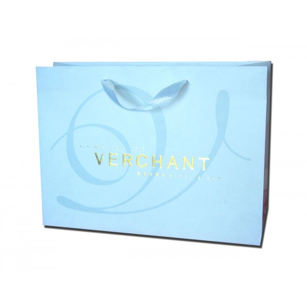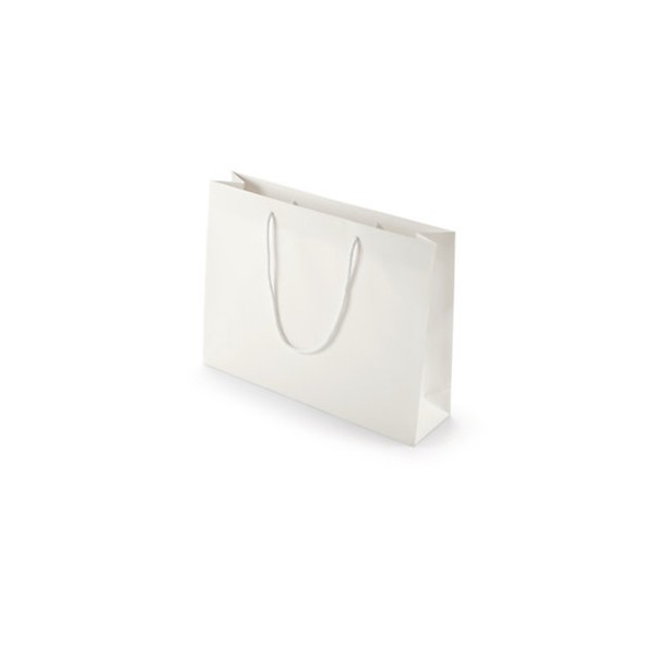 papier kraft couché blanc 160 grammes pelliculage mat, retour et fond carton, finition : mat, poignée cordelette coton 4 noeuds, impression recto