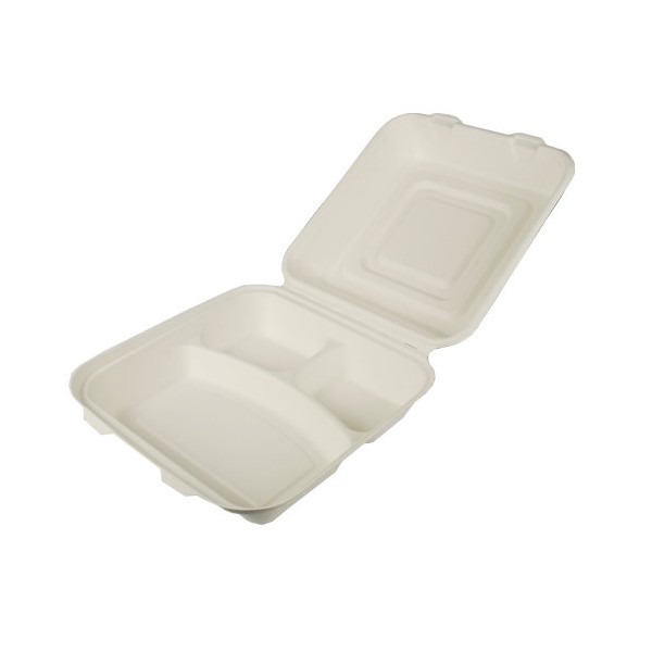 Boîtes Menu en sucre de canne "pure bio" 3 compartiments 8,5 cm x 24,5 cm x 24,5 cm blanc